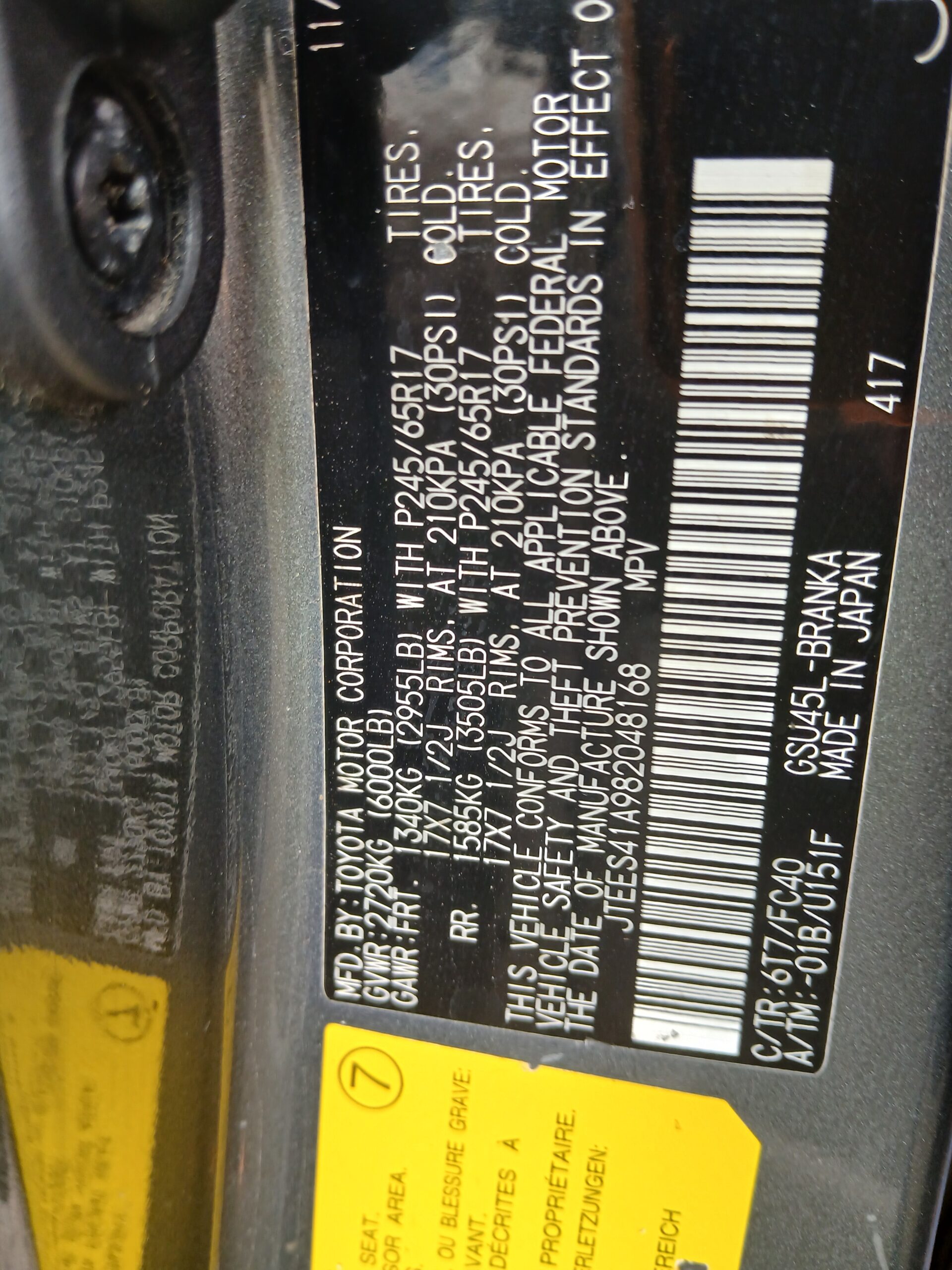 A foreign used Toyota Highlander